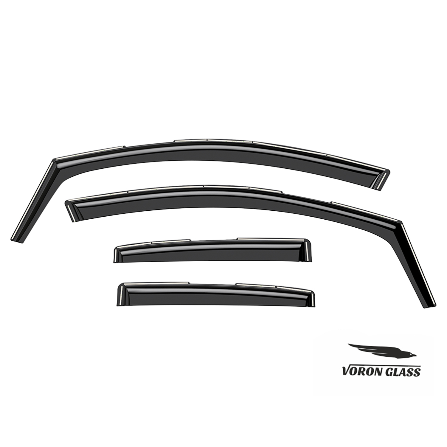 Voron Glass window deflectors brand are our lower-cost alternative to high quality, stylish window deflectors. Voron Glass window air deflectors are made with strong acrylic material to protect against heat, wind, rain when you are on the road. They are impervious to any road debris that might impact them. The window deflectors allows fresh air to naturally circulate through open windows while keeping the rain out. Additionally, the product keeps the sun out of your eyes, enables fresh air circulation to eliminate stale, smoky air and allows you to keep your window cracked while parked, keeping the interior cooler. Also prevents window and interior mirror fogging.