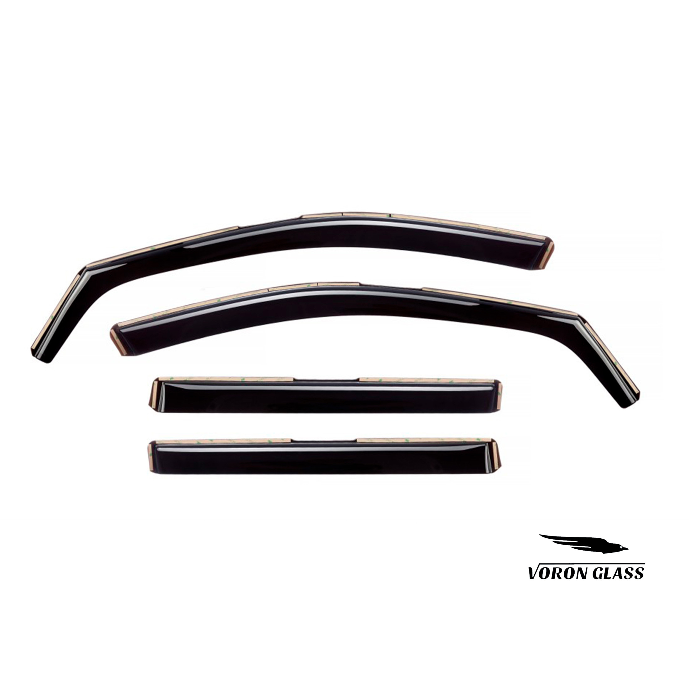 Voron Glass window deflectors brand are our lower-cost alternative to high quality, stylish window deflectors. Voron Glass window air deflectors are made with strong acrylic material to protect against heat, wind, rain when you are on the road. They are impervious to any road debris that might impact them. The window deflectors allows fresh air to naturally circulate through open windows while keeping the rain out. Additionally, the product keeps the sun out of your eyes, enables fresh air circulation to eliminate stale, smoky air and allows you to keep your window cracked while parked, keeping the interior cooler. Also prevents window and interior mirror fogging.
