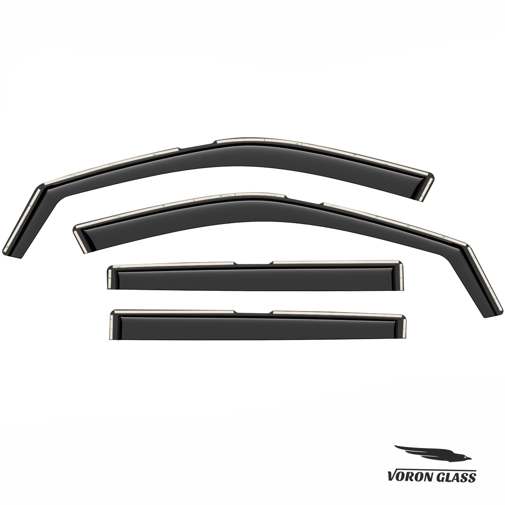 Voron Glass window deflectors brand are our lower-cost alternative to high quality, stylish window deflectors. Voron Glass window air deflectors are made with strong acrylic material to protect against heat, wind, rain when you are on the road. They are impervious to any road debris that might impact them. The window deflectors allows fresh air to naturally circulate through open windows while keeping the rain out. Additionally, the product keeps the sun out of your eyes, enables fresh air circulation to eliminate stale, smoky air and allows you to keep your window cracked while parked, keeping the interior cooler. Also prevents window and interior mirror fogging.