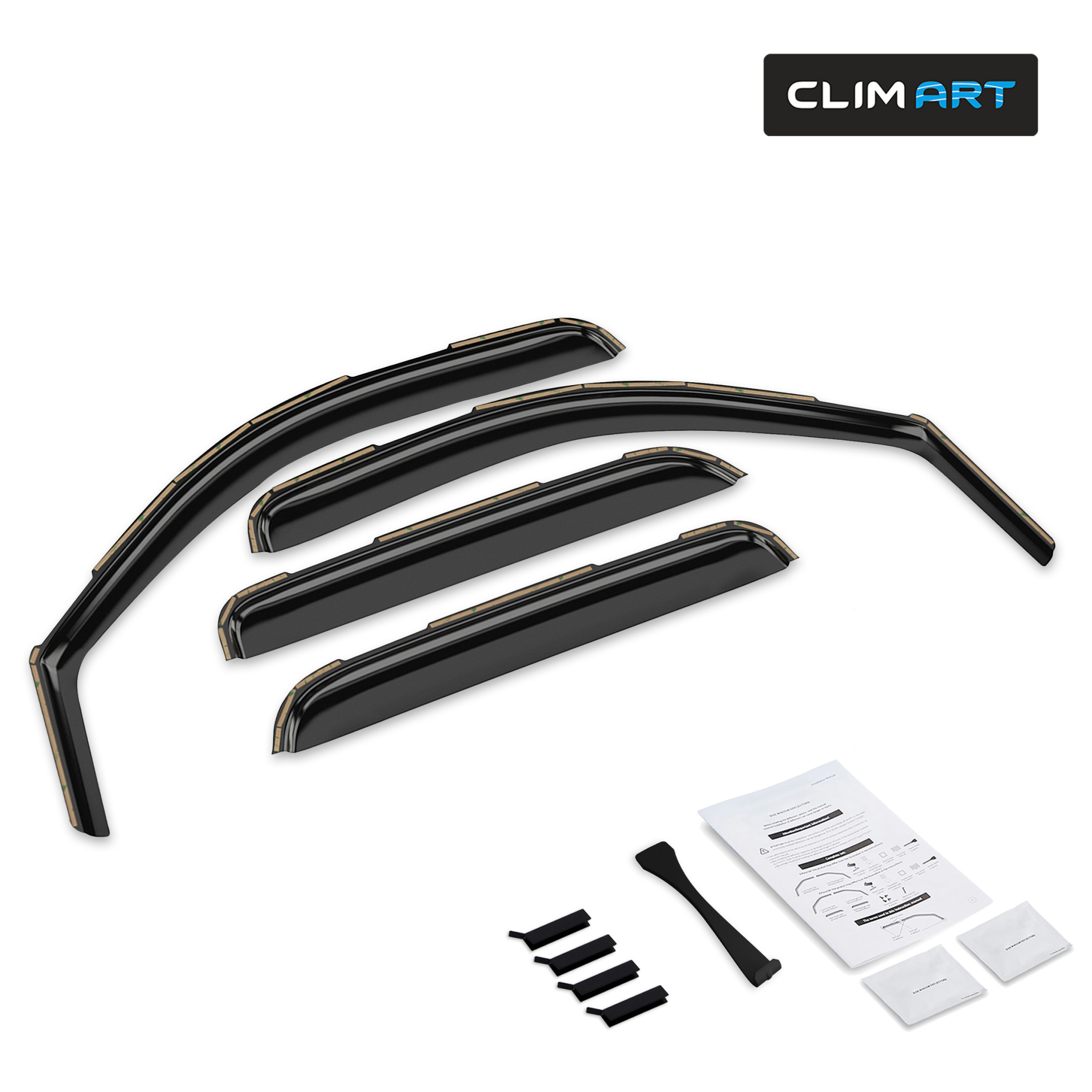 • MAKE CAR RIDES MORE ENJOYABLE — Open the windows and enjoy the breeze as you cruise around, without worrying about the noisy wind, chilly snow, annoying rain sprays/splashes, or the blazing sunshine with CLIM ART side window deflectors. Drive in STYLE & COMFORT with our car window shields.