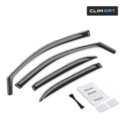 • MAKE CAR RIDES MORE ENJOYABLE — Open the windows and enjoy the breeze as you cruise around, without worrying about the noisy wind, chilly snow, annoying rain sprays/splashes, or the blazing sunshine with CLIM ART side window deflectors. Drive in STYLE & COMFORT with our car window shields.