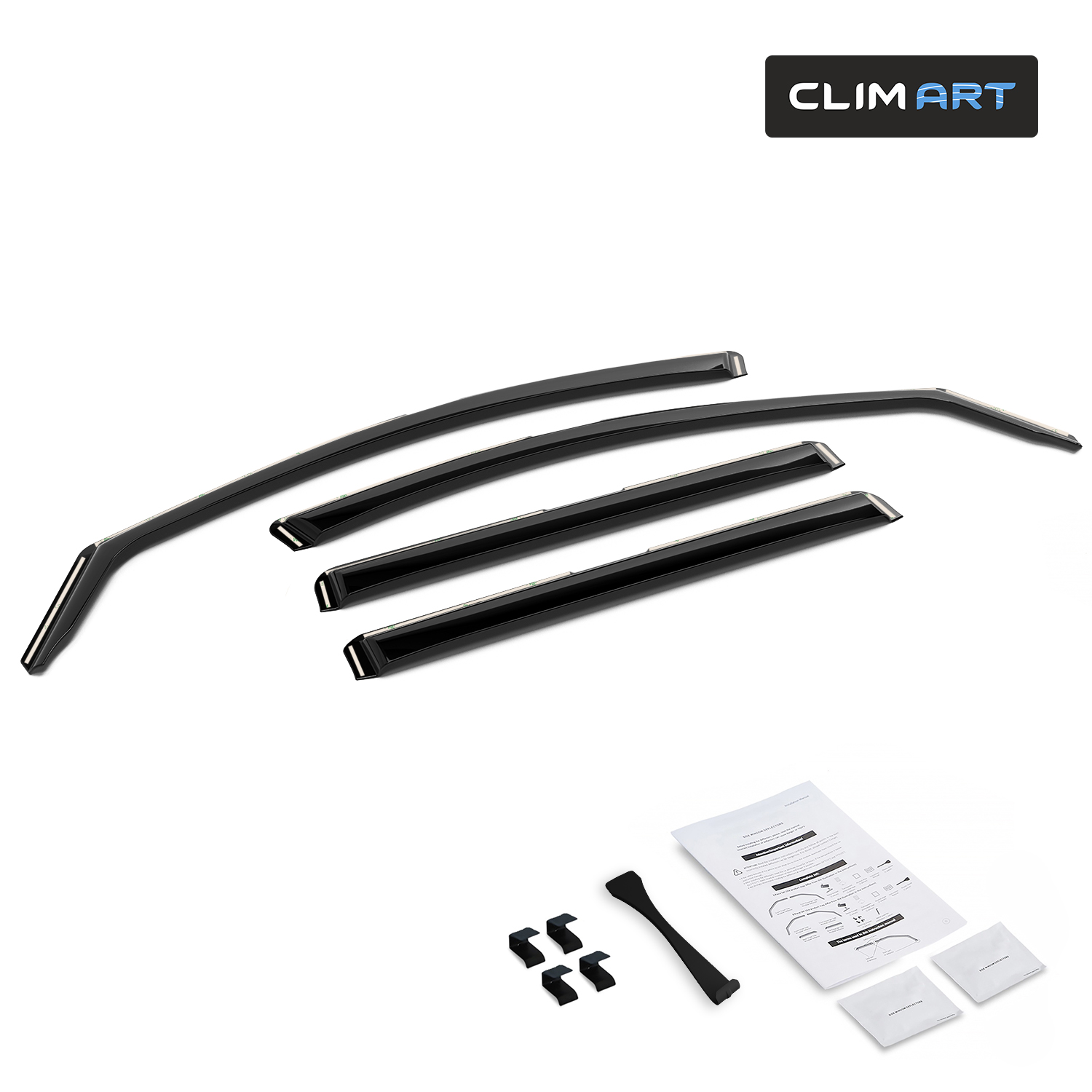 • MAKE CAR RIDES MORE ENJOYABLE — Open the windows and enjoy the breeze as you cruise around, without worrying about the noisy wind, chilly snow, annoying rain sprays/splashes, or the blazing sunshine with CLIM ART side window deflectors. Drive in STYLE & COMFORT with our car window shields.