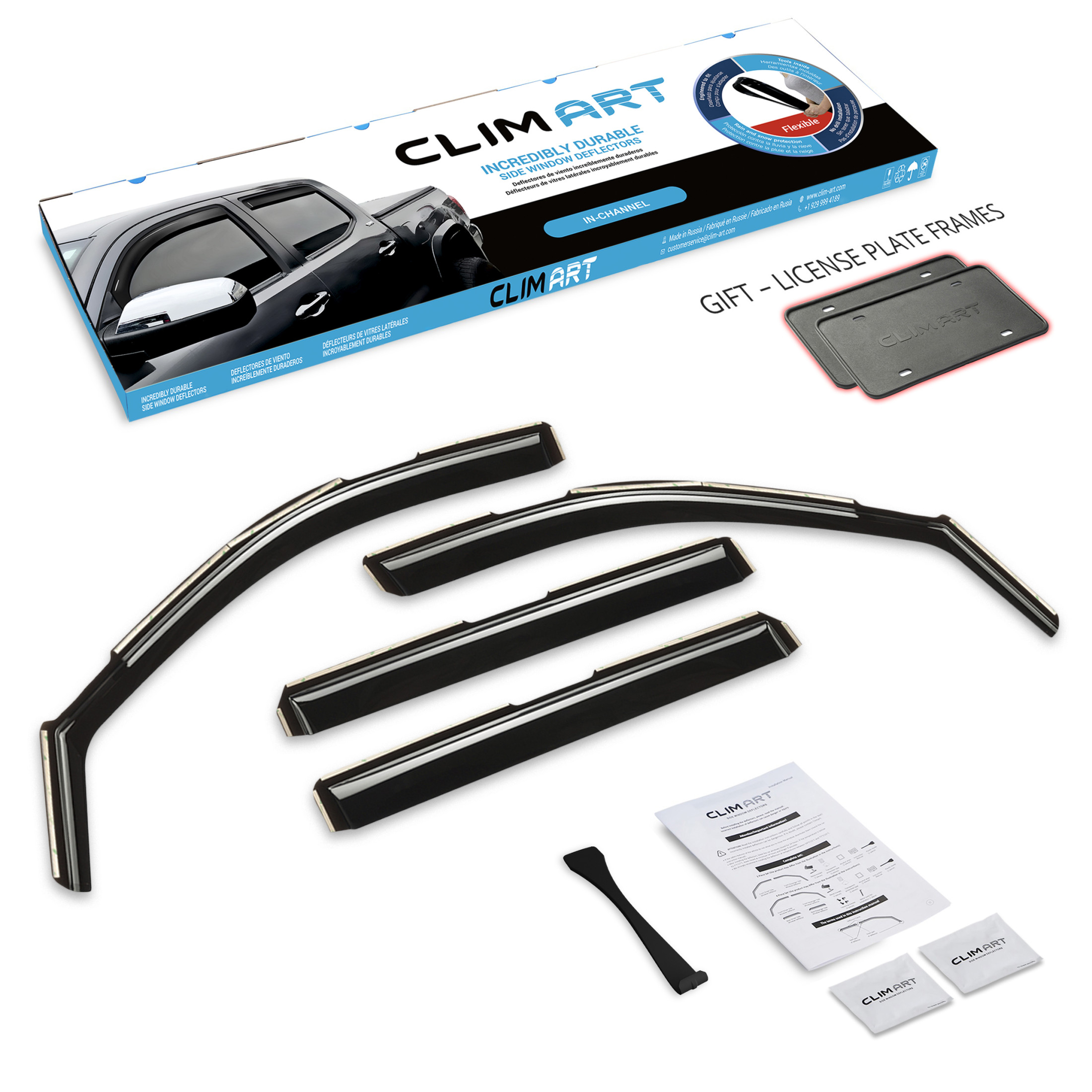 • MAKE CAR RIDES MORE ENJOYABLE — Open the windows and enjoy the breeze as you cruise around, without worrying about the noisy wind, chilly snow, annoying rain sprays/splashes, or the blazing sunshine with CLIM ART side window deflectors. Drive in STYLE & COMFORT with our car window shields.