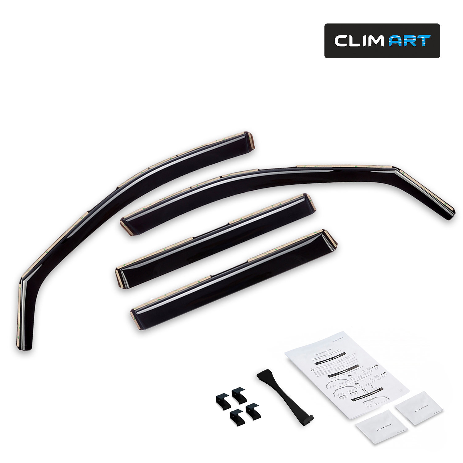 • MAKE CAR RIDES MORE ENJOYABLE — Open the windows and enjoy the breeze as you cruise around, without worrying about the noisy wind, chilly snow, annoying rain sprays/splashes, or the blazing sunshine with CLIM ART side window deflectors. Drive in STYLE & COMFORT with our car window shields.