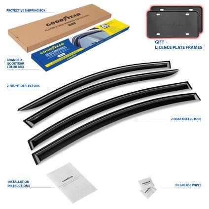 • PREMIUM GOODYEAR WINDOW DEFLECTORS let you roll your window down in rain, high winds, snow and ice. Keep you from getting wet while enjoying fresh air. Made of high quality, durable SHATTERPROOF material. Will not crack, break, or chip.