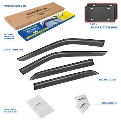 • PREMIUM GOODYEAR WINDOW DEFLECTORS let you roll your window down in rain, high winds, snow and ice. Keep you from getting wet while enjoying fresh air. Made of high quality, durable SHATTERPROOF material. Will not crack, break, or chip.