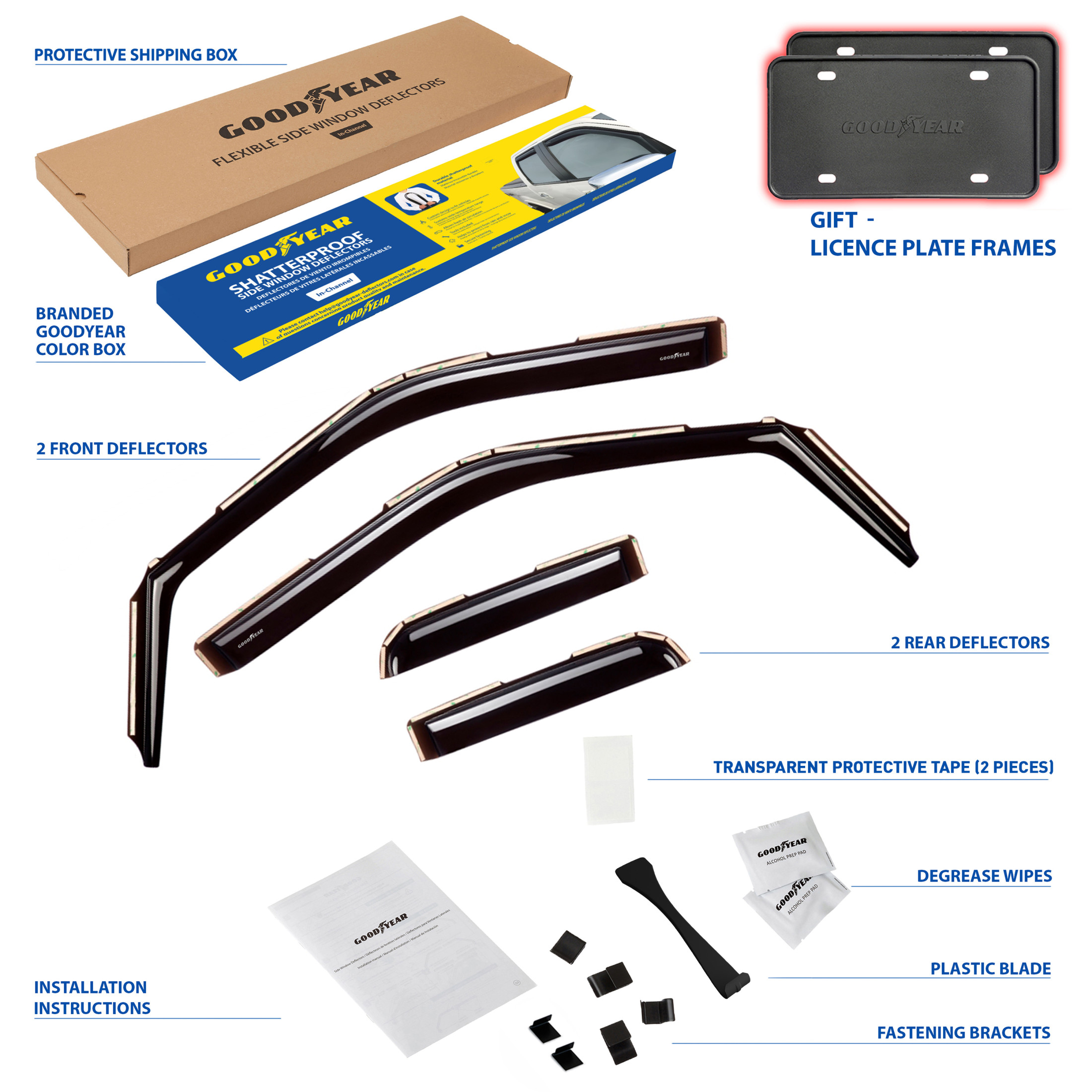 Goodyear Shatterproof Side Window Deflectors the famous high quality rain guards that let you drive with your window down in rain, snow, ice and other inclement conditions.