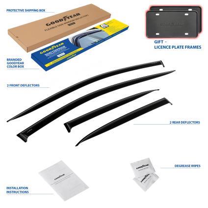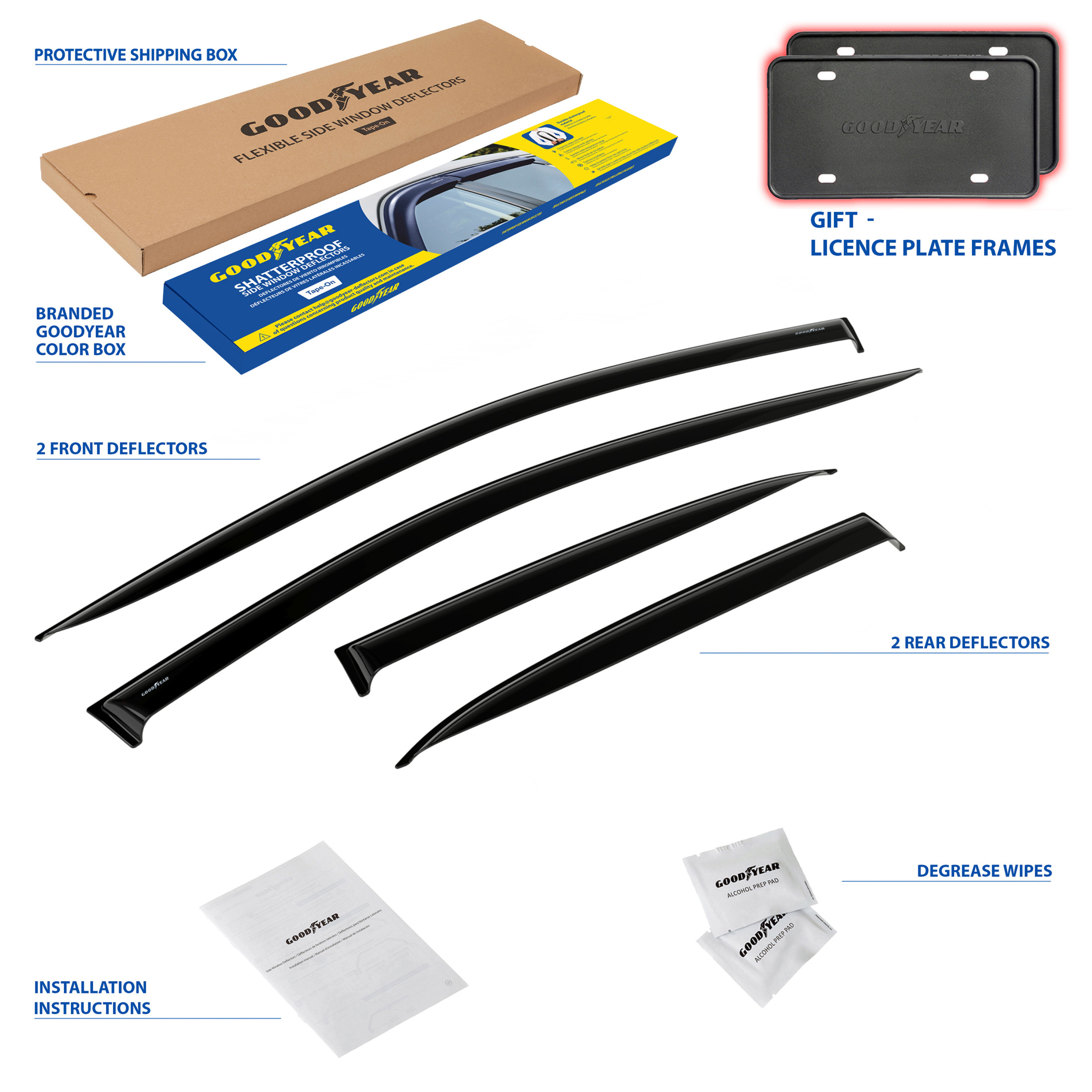 • PREMIUM GOODYEAR WINDOW DEFLECTORS let you roll your window down in rain, high winds, snow and ice. Keep you from getting wet while enjoying fresh air. Made of high quality, durable SHATTERPROOF material. Will not crack, break, or chip.