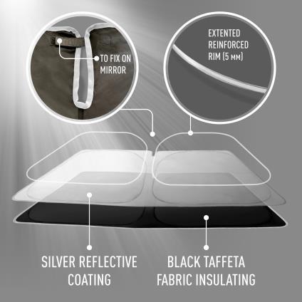 • ELITE MATERIALS AND CRAFTSMANSHIP: Crafted of durable materials, our windshield car shade resists the test of time and won’t fall apart soon like many sun shades for cars. Made of two layers, an outside reflective layer, and an inner felt layer, it is extra-strong and will last you for long years.